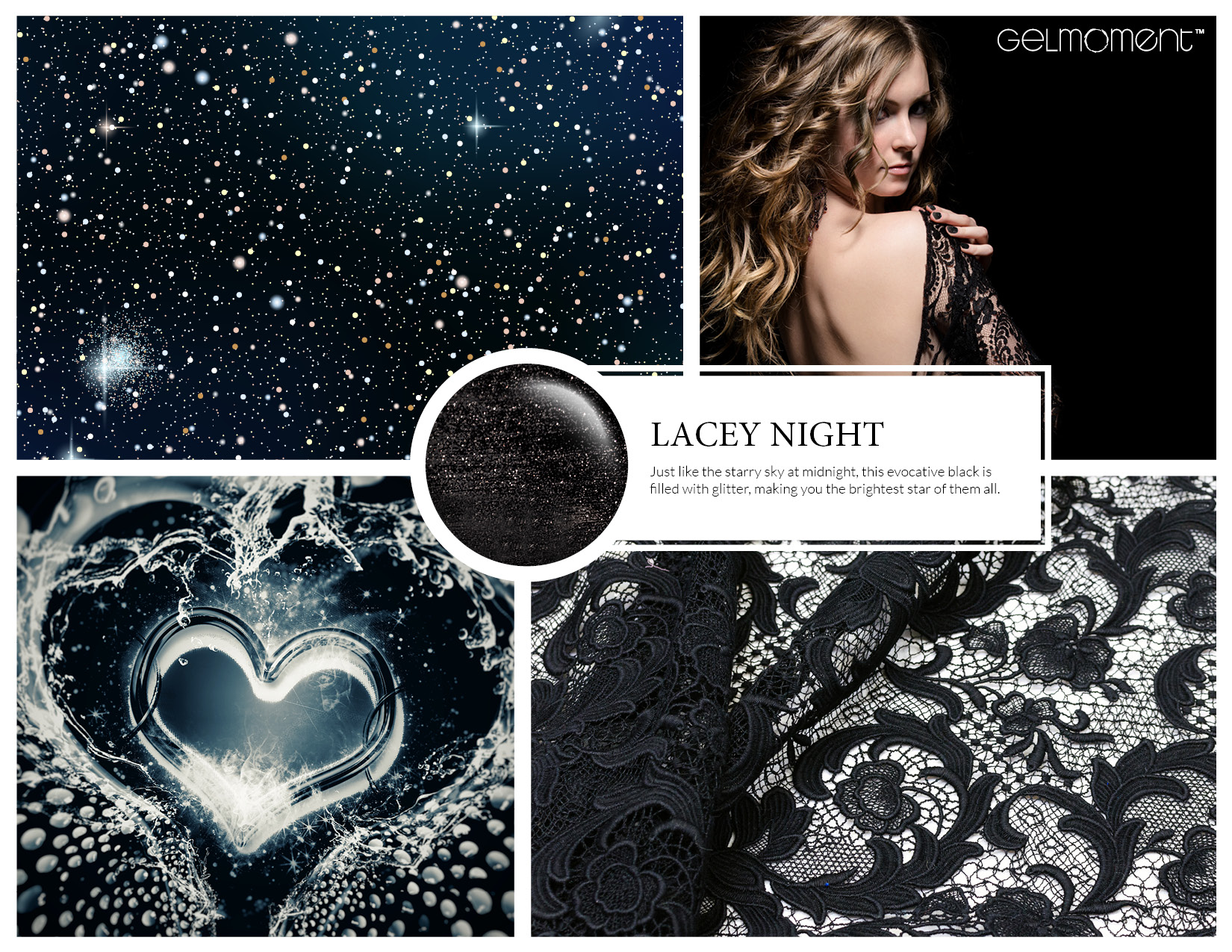 This black polish shimmers with stars aplenty.